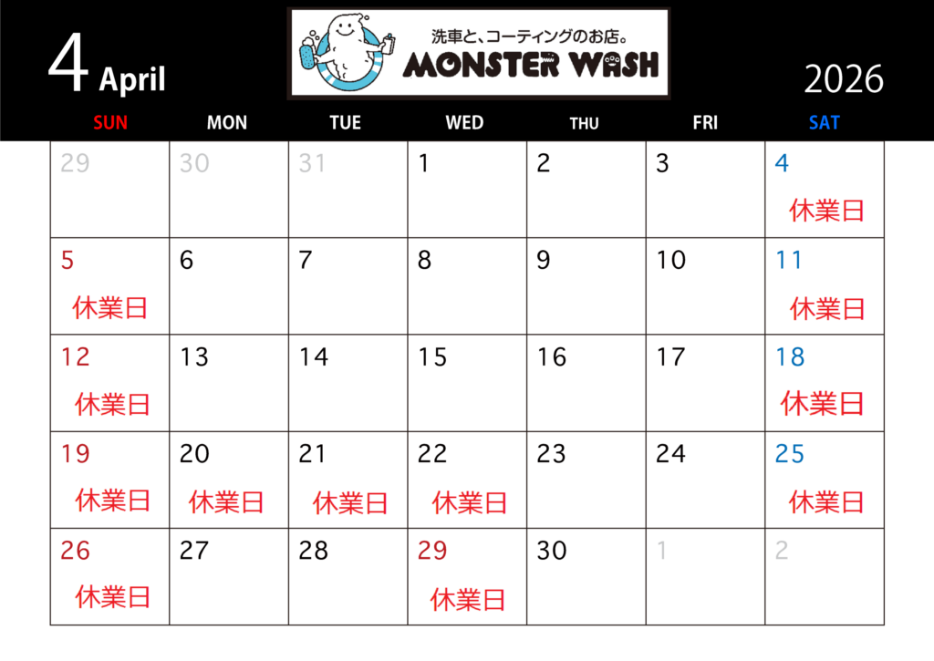 4月休業日のお知らせ